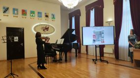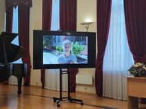 Ведущая мероприятия рассказала зрителям о школе, о В.В. Ковалеве.