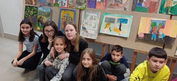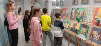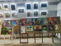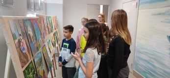 На втором этаже школы представлена выставка художественных работ "Вид из окна".
