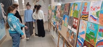 По итогам занятий на втором этаже школы открылась выставка творческих работ, посвященная Году защитника Отечества (классы преподавателей Грековой Ольги Сергеевны, Наумовой Елены Витальевны, Першиной Ирины Андреевны).