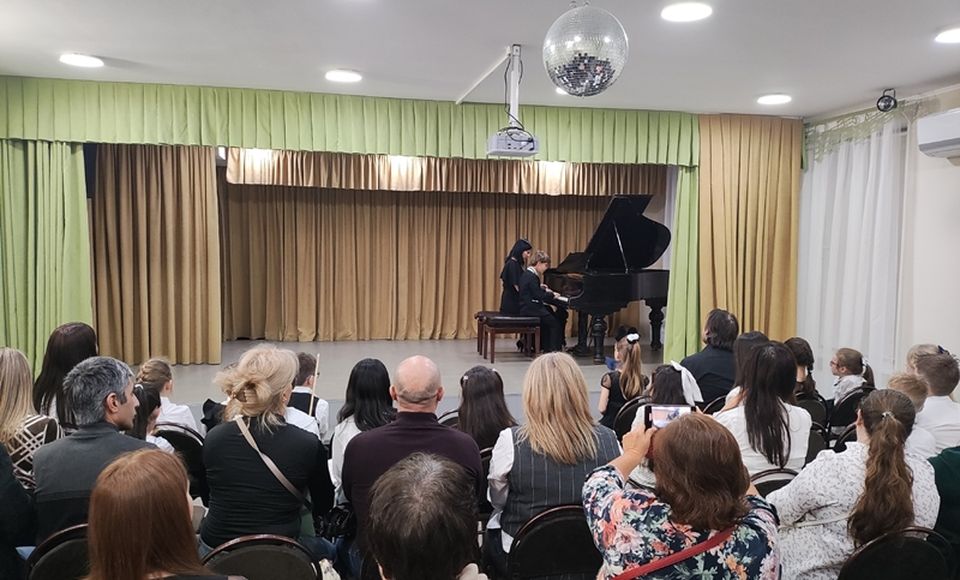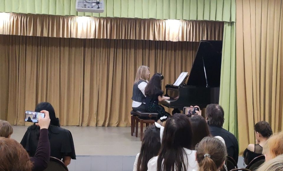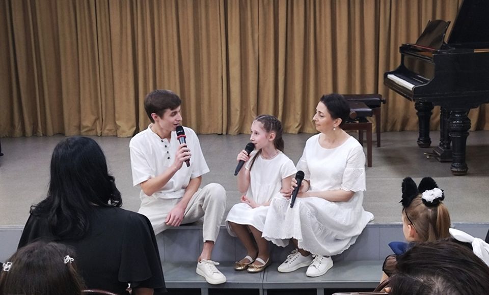 На сцене выступали семейные дуэты и ансамбли: сёстры, братья, мамы и папы вместе музицировали и пели для зрителей. Отрадно было видеть выпускников школы, подготовивших совместные номера со своими младшими родственниками и нынешними учениками.