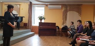 27 октября 2018 года учащиеся и преподаватели нашей школы побывали на концерте студентов СПО кафедры академического вокала Саратовской государственной консерватории им. Л.В. Собинова, который проходил в концертном зале нашей школы. Студенты I-IV курсов преподавателя высшей квалификационной категории, Заслуженной артистки России Л.А. Скопинцевой и преподавателя высшей квалификационной категории М.С. Макаровой выступили перед зрителями с вокальными номерами. По заваршению концерта преподаватель Л.А. Скопинцева провела мастер-класс с учащимися отделения вокального исполнительства нашей школы.