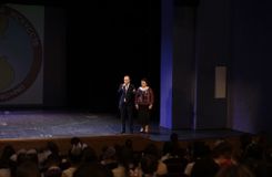 06 ноября 2018 г. состоялось замечательное событие – в нашу большую дружную семью влились новенькие. На сцене старого ТЮЗа прошло «Посвящение в юные таланты», а на самом деле – путешествие по сказочным творческим королевствам. Четверо юных конферансье, учащихся отделения театрального искусства, в результате зрелищной телепортации сначала очутились в музыкальном королевстве и познакомились вместе со зрителями с нотками, насладились песнями. В королевстве танца их сопровождали феечки – юные балерины. Красочными танцами заиграла сцена. И вот уже новое королевство – в нем творят художники, разукрашивая самыми радостными красками мир вокруг. Четверка отважных путешественников добралась до королевства театра и все погрузились в атмосферу перевоплощений. Приключения и превращения – все становится возможным, как только переступаешь порог школы искусств. И почетная клятва, и памятные нагрудные знаки, и добрые напутственные слова Максима Викторовича Макурова, и.о. начальника управления по культуре администрации МО «Город Саратов», и Ольги Ивановны Гусевой, директора школы искусств – так торжественно и ярко принимает наша школа новых талантливых учащихся. Все только начинается! В добрый путь!