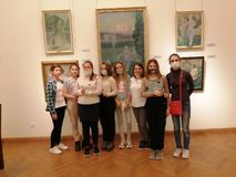 1 b 4 октября учащиеся 2, 3 и 4 классов отделения изобразительного искусства посетили Саратовский музей имени А.Н. Радищева. Ребятам была проведена экскурсия по выставке, посвящённой 150-летию со дня рождения В.Э. Бориса - Мусатова. На выставке были представлены работы из Третьяковской галерии, Эрмитажа, Русского музея. Ученики познакомились с жизнью и творчеством художника! В процессе экскурсии ребята делали наброски с работ, чтобы ещё больше познакомиться с техникой Виктора Эльпидифоровича.
