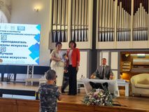 На Региональном форуме педагогических работников сферы культуры «Через инновации – к качеству художественного образования» министр культуры Саратовской области Наталия Юрьевна Щелканова вручила директору кубок, диплом победителя и сертификат на сто тысяч рублей.