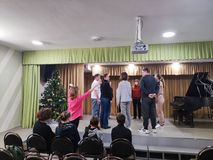 14 декабря 2024 года в концертном зале школы преподавателем отделения театрального искусства Урусовой Екатериной Анатольевной был проведён необычный урок "Театр объединяет" в рамках школьного творческого проекта "В школу искусств всей семьёй". В качестве учеников приняли участие не только учащиеся отделения, но и их родители.