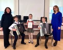 учащиеся отделения народных инструментов (аккордеон) Беляков Дмитрий и Басков Михаил (преподаватель Шарова Оксана Валерьевна).