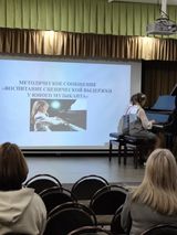 Преподаватели школы выступили с методическими сообщениями на тему: «Воспитание сценической выдержки у юного музыканта»: