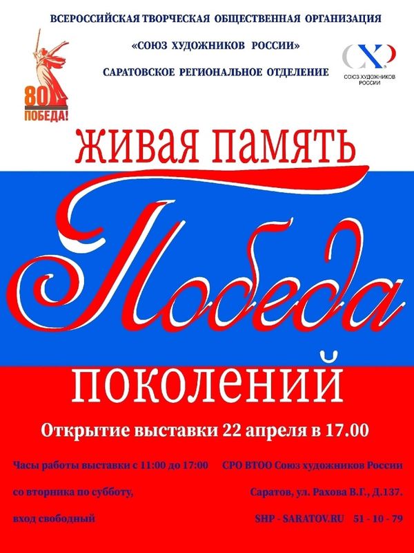 22 апреля 2025 года в Саратовском региональном отделении ВТОО «Союз художников России» состоялось торжественное открытие выставки «Живая память. Победа поколений», посвящённой 80-летию Великой Победы.
