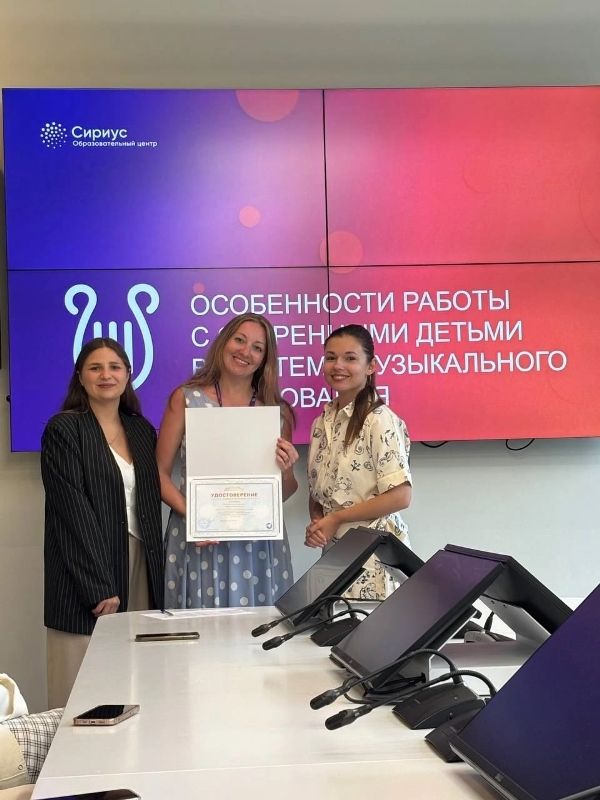 Преподаватель отделения фортепиано нашей школы Король Татьяна Романовна с 1 по 10 июля 2025 года прошла обучение по дополнительной профессиональной программе повышения квалификации «Особенности работы с одаренными детьми в системе музыкального образования» в Образовательном центре "Сириус".