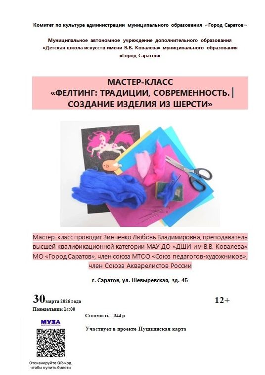 Мастер-класс доступен по Пушкинской карте.